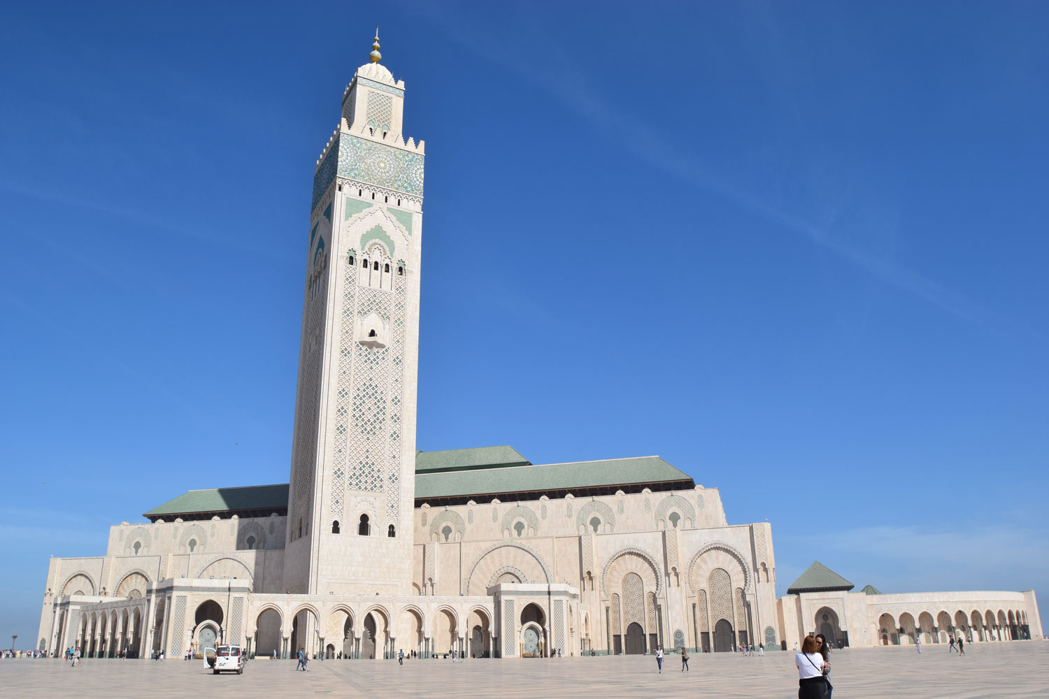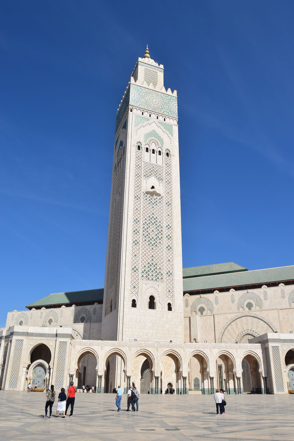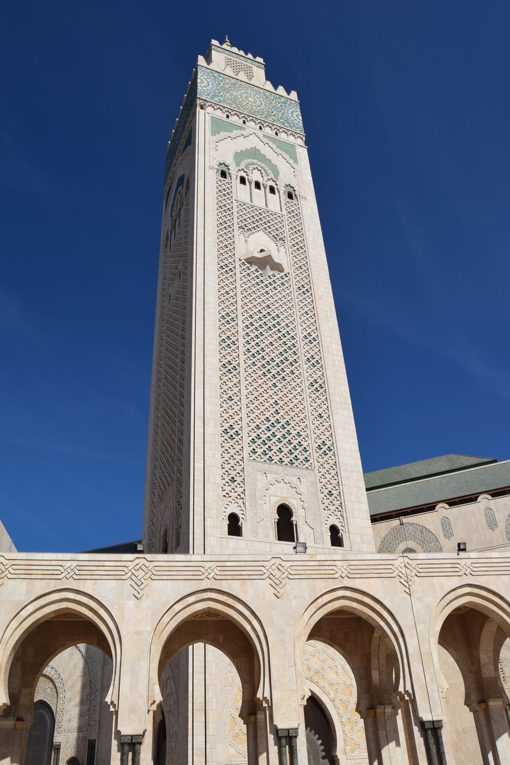 Son minaret fait 200m de haut et est visible d'un peu partout à Casablanca. La nuit, un laser s'illumine du haut du minaret pour indiquer la direction de la mecque. Pour ceux qui ne le savent pas, les musulmans du monde entier s'orientent dans cette direction lors de la prière.