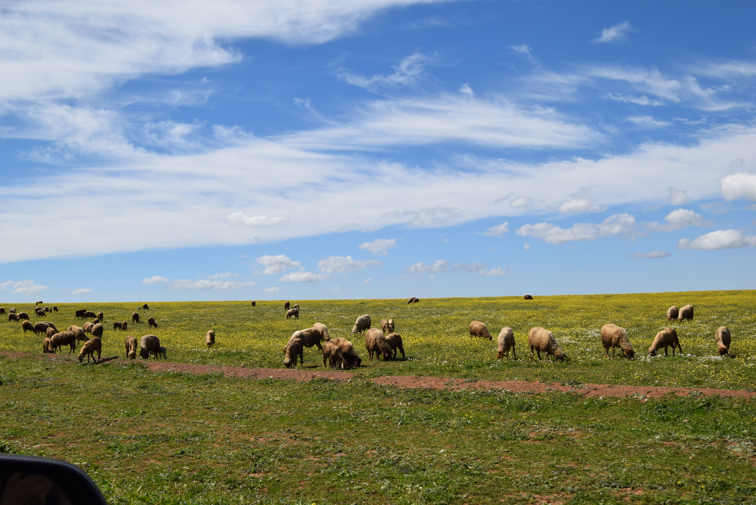 Je ne sais pas si cette région est spécialement basée sur l'agriculture et l'élevage, mais en tous cas c'est l'impression que j'en ai eu. Il y a des champs à perte de vue, et on croise des troupeaux de moutons un peu partout.