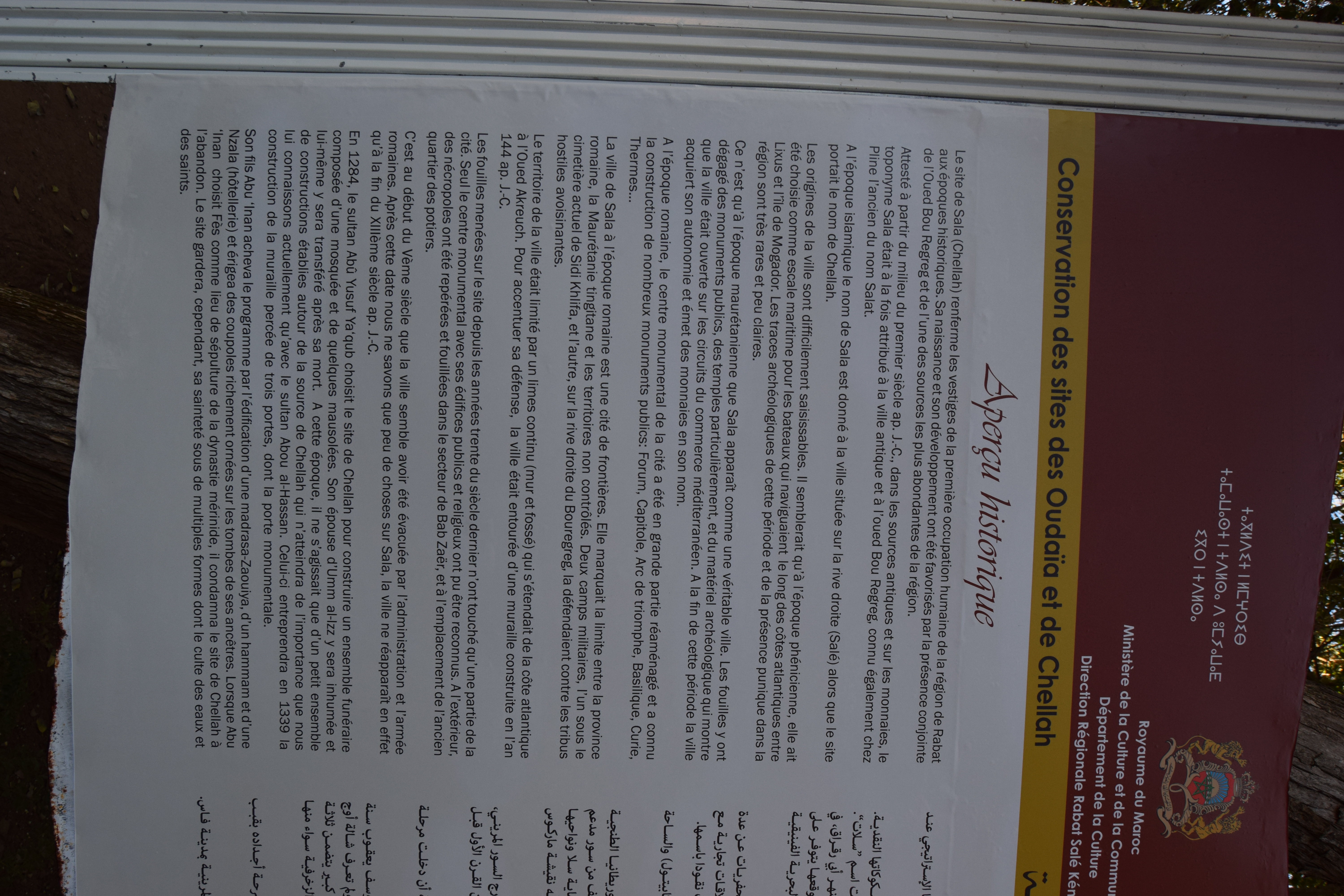 Le site est beaucoup moins bien conservé que celui de Volubilis ou la Kasbah de Boulaoune, mais donne malgré tout une bonne vision de ce qu'on pu être les citées de l'époque.